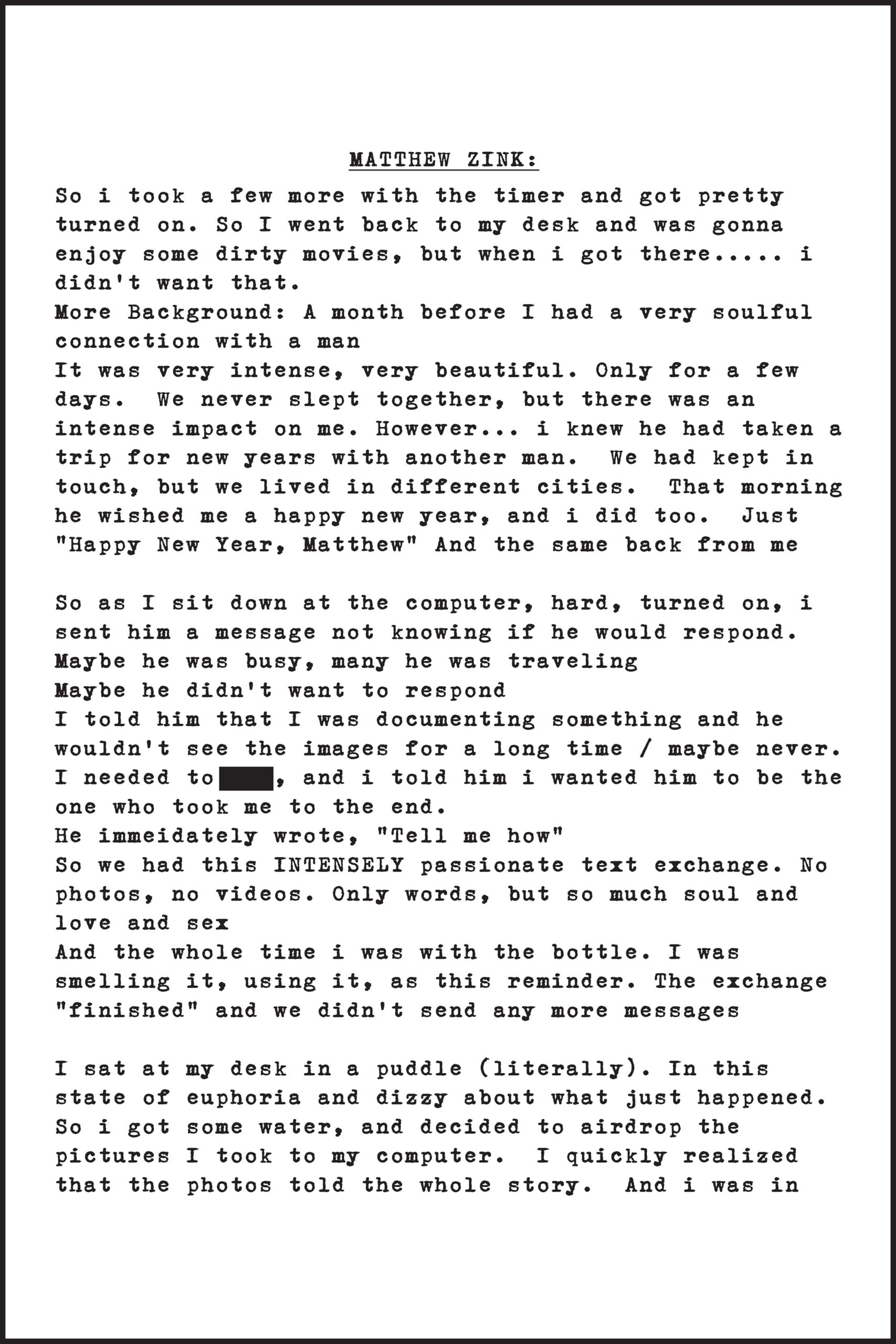 An explicit account of a very intimate experience behind closed doors. Photographed by Matthew as the night unfolded and driven by the atmosphere of the?. an intense night of unplanned sensual exploration was captured.